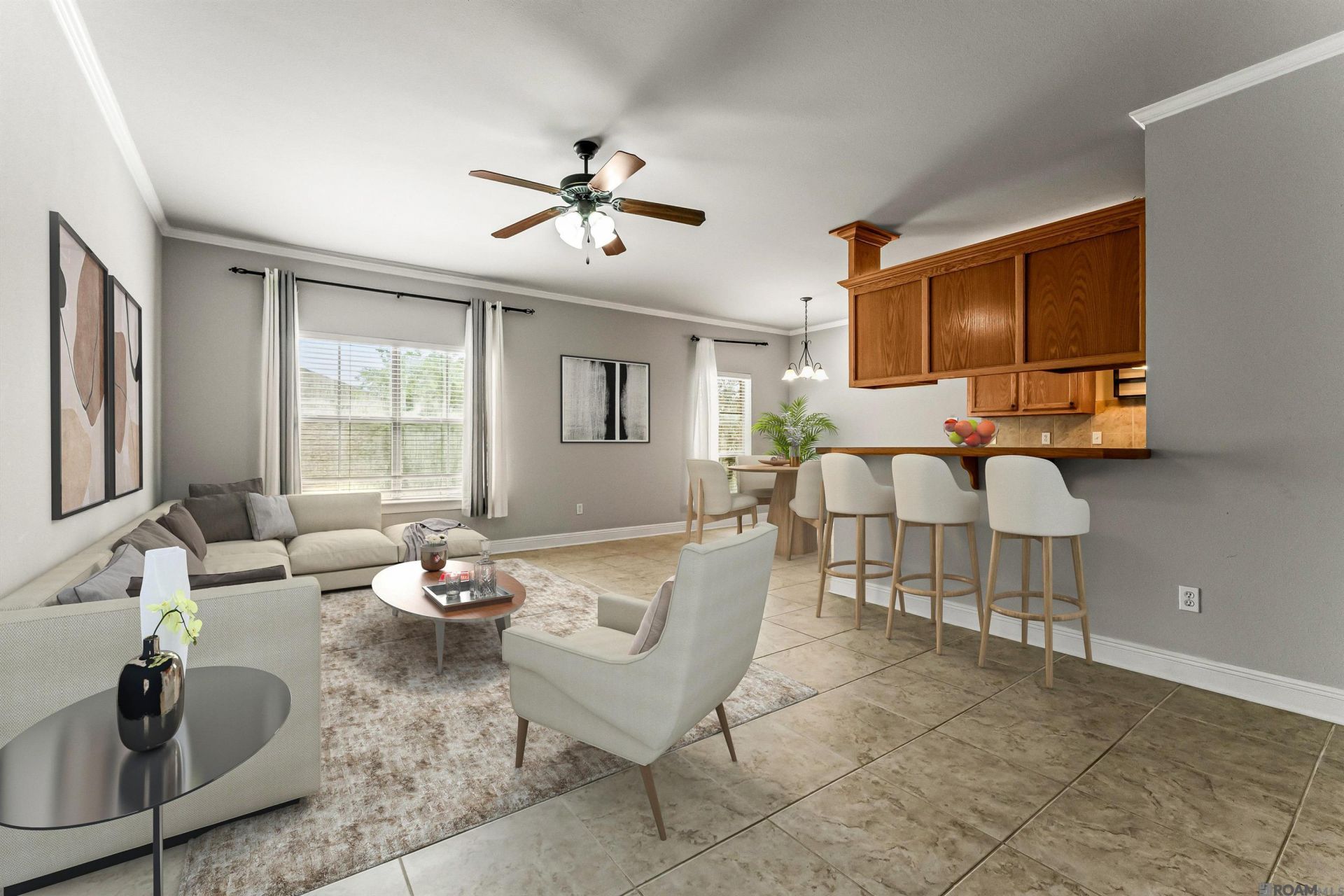 Incredible opportunity in desirable Meadow Bend Crossing! This well-maintained 2 bedroom, 2 bath second-floor condo offers a spacious open floor plan with 9' ceilings, crown molding, ceramic tile flooring, and a beautiful balcony overlooking peaceful pine trees. The kitchen features stained wood cabinets, tile countertops, and an attached utility closet. Washer, dryer, and refrigerator remain. The primary suite includes its own private balcony and attached bath. Located in a gated community just minutes from LSU, shopping, dining, and more?this condo is ideal for students, professionals, investors, or anyone seeking low-maintenance living in a convenient location.
